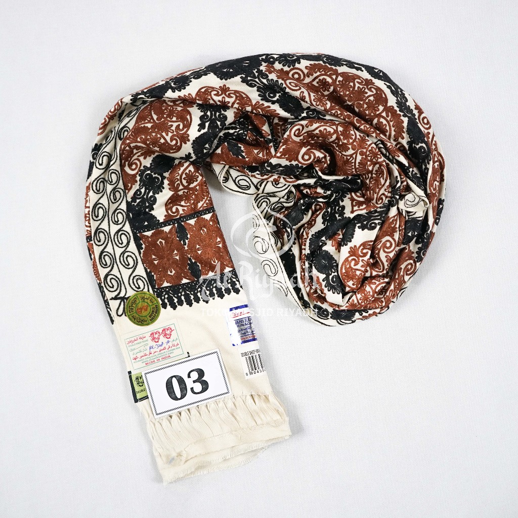 Sorban Double Sheep Kashmiri Pl348A Putih Full Motif Sulam Timbul