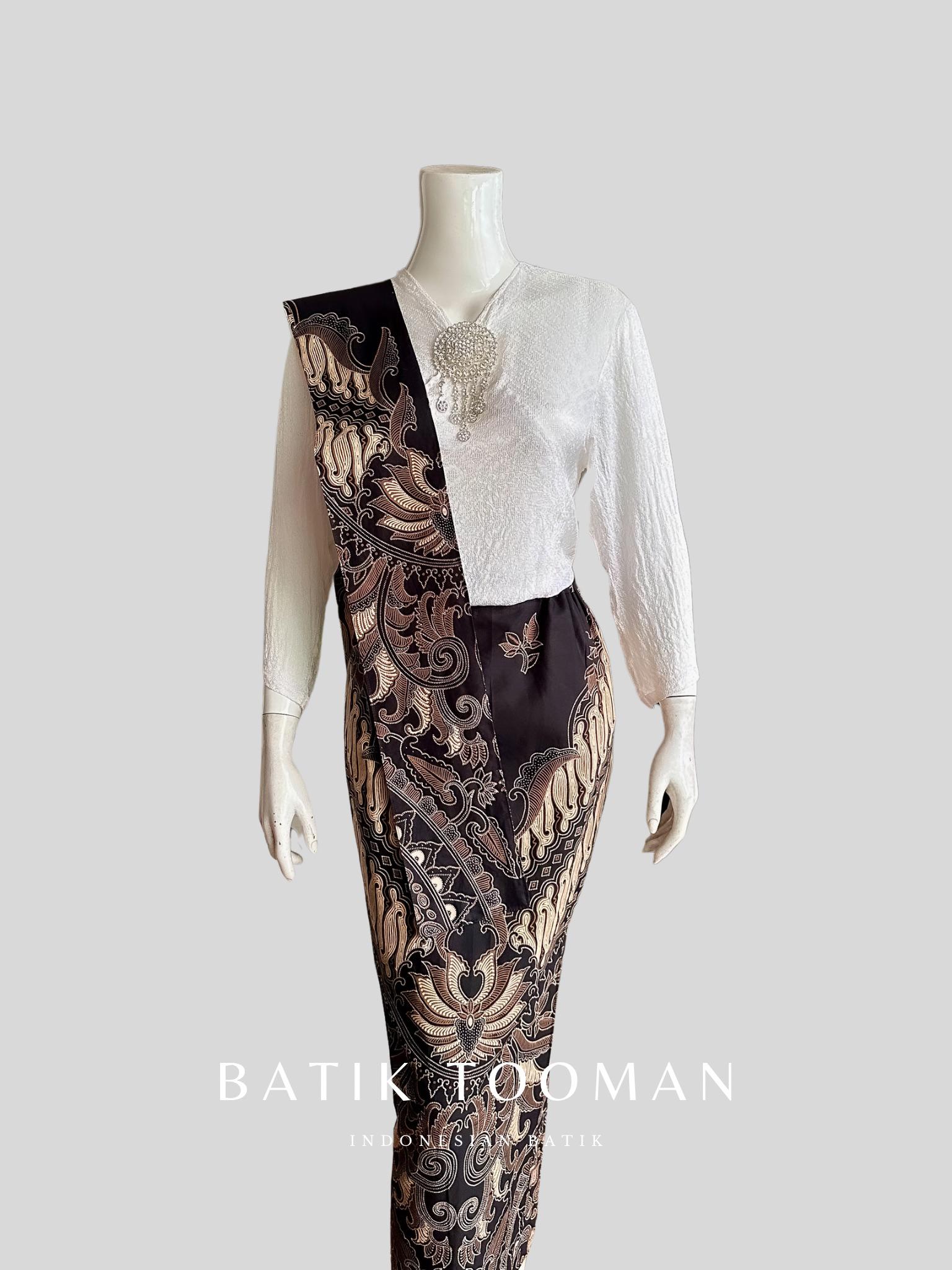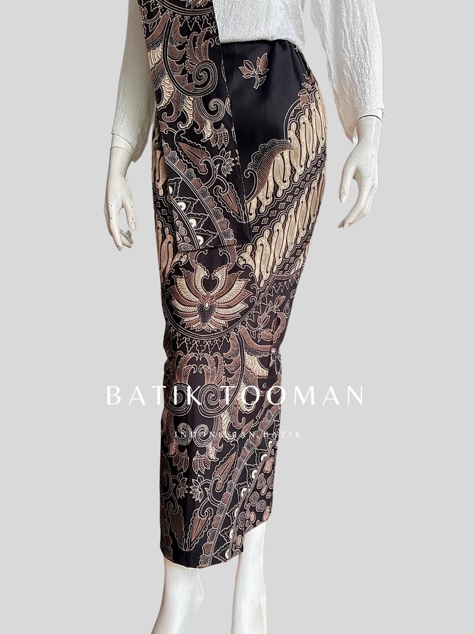GURDONIA Black Choco Cream Rok Batik Span Instan Resleting Warna Coklat Krem Bahan Katun Halus Berselendang