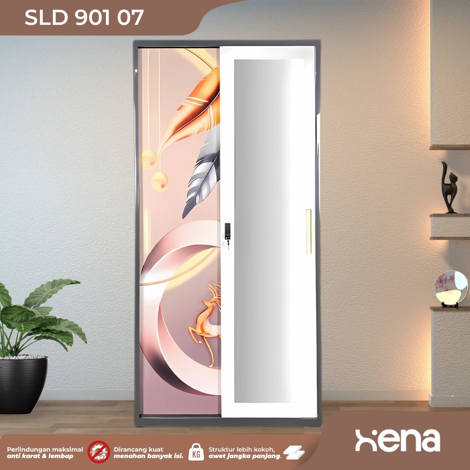Xena Lemari Besi Sliding 2 Pintu / Lemari Besi 2 Pintu Sliding / Lemari Baju Sleding Kaca MST XTONE SLD 901