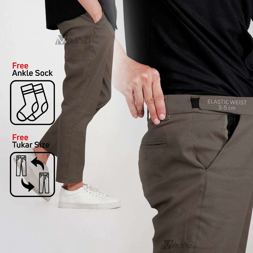 Majazi Celana Chino Ankle Pants Slim Fit Brown Shitake