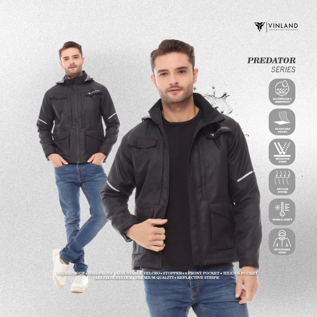 Jaket Motor Pria Waterproof Parasut Anti Angin dan Hujan Vinland Predator