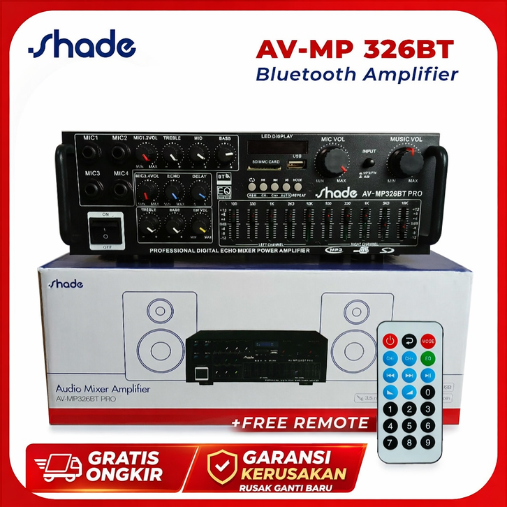 [Star] AMPLIFIER BLUETOOTH SUBWOOFER POWER MIXER AMPLIFIER SOUND SYESTEM ASHLEY 4 CHANEL SHADE AV-MP 326BT ORIGINAL