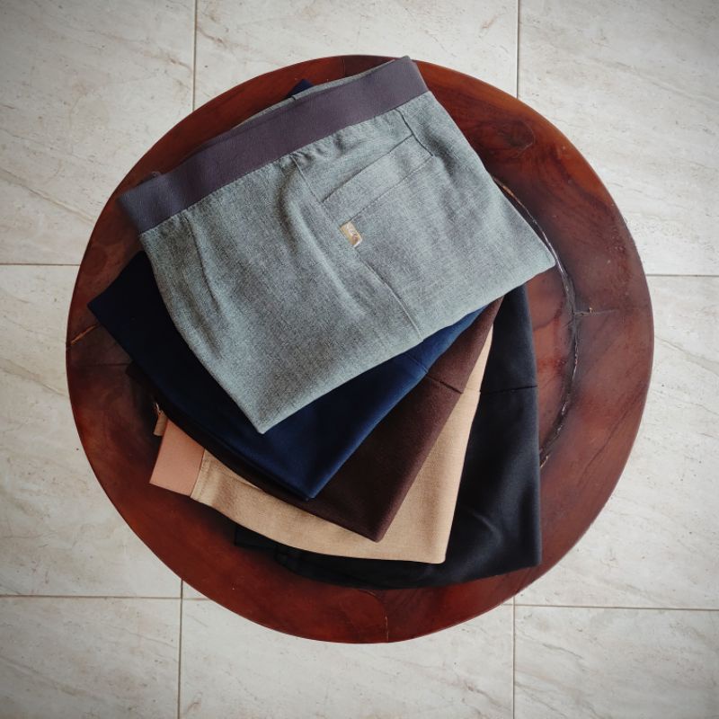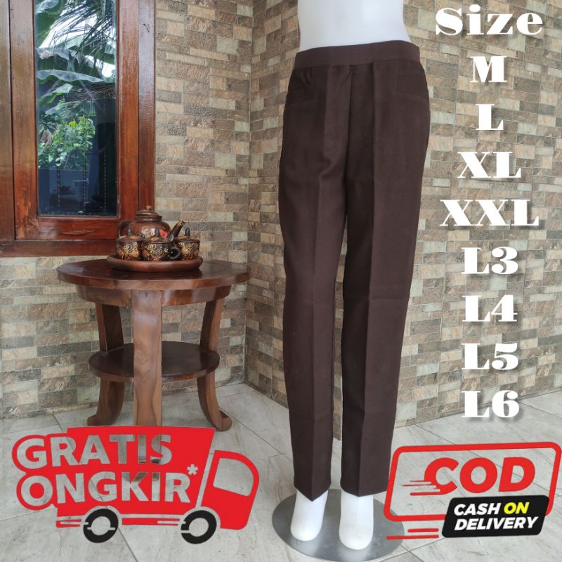 Celana Kerja Wanita Celana Kantor Wanita Celana Bahan Formal Wanita Pinggang Karet High Waist Premium Jumbo Coklat Tua