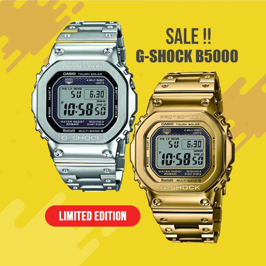 Jam Tangan Pria Casio G-Shock B5000 Digital Rantai Silver Stainless Steel Ori Bm Non Tough Solar