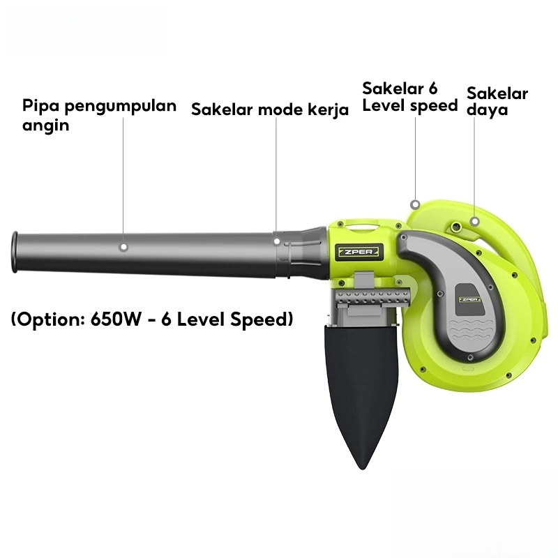 ZPER 650W Mesin Blower Angin Kencang Meniup Menghisap Industri Blower Keong Portable Hand Blower Alat Peniup Angin Groom
