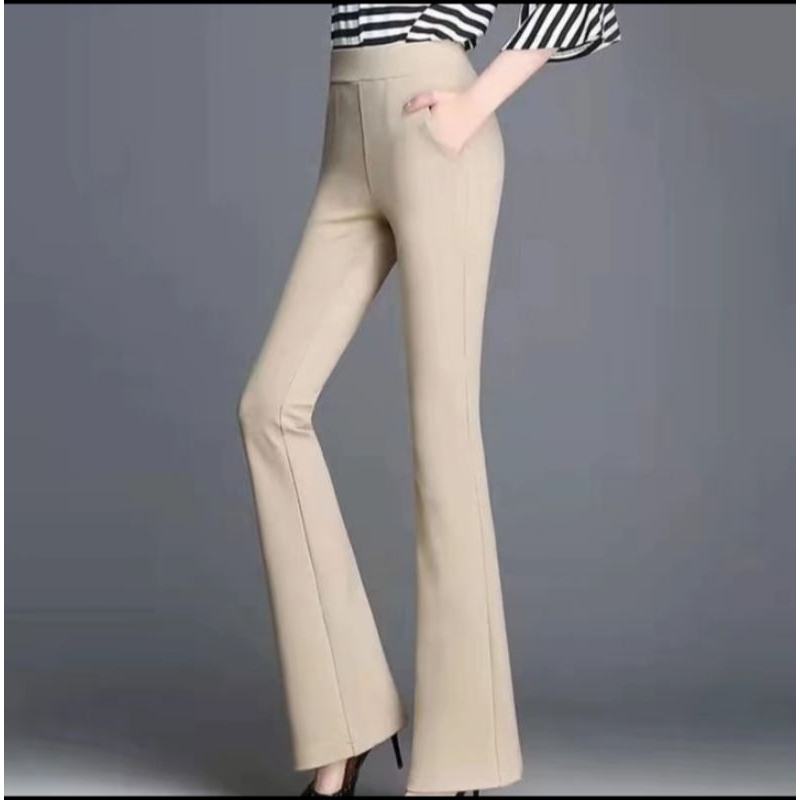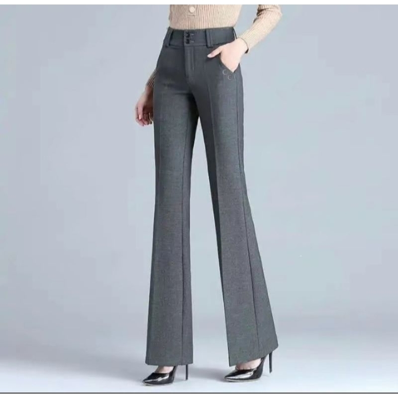 Celana cutbray wanita kantor bahan formal hitam panjang kancing Dua saku aktif Celana wanita bahan