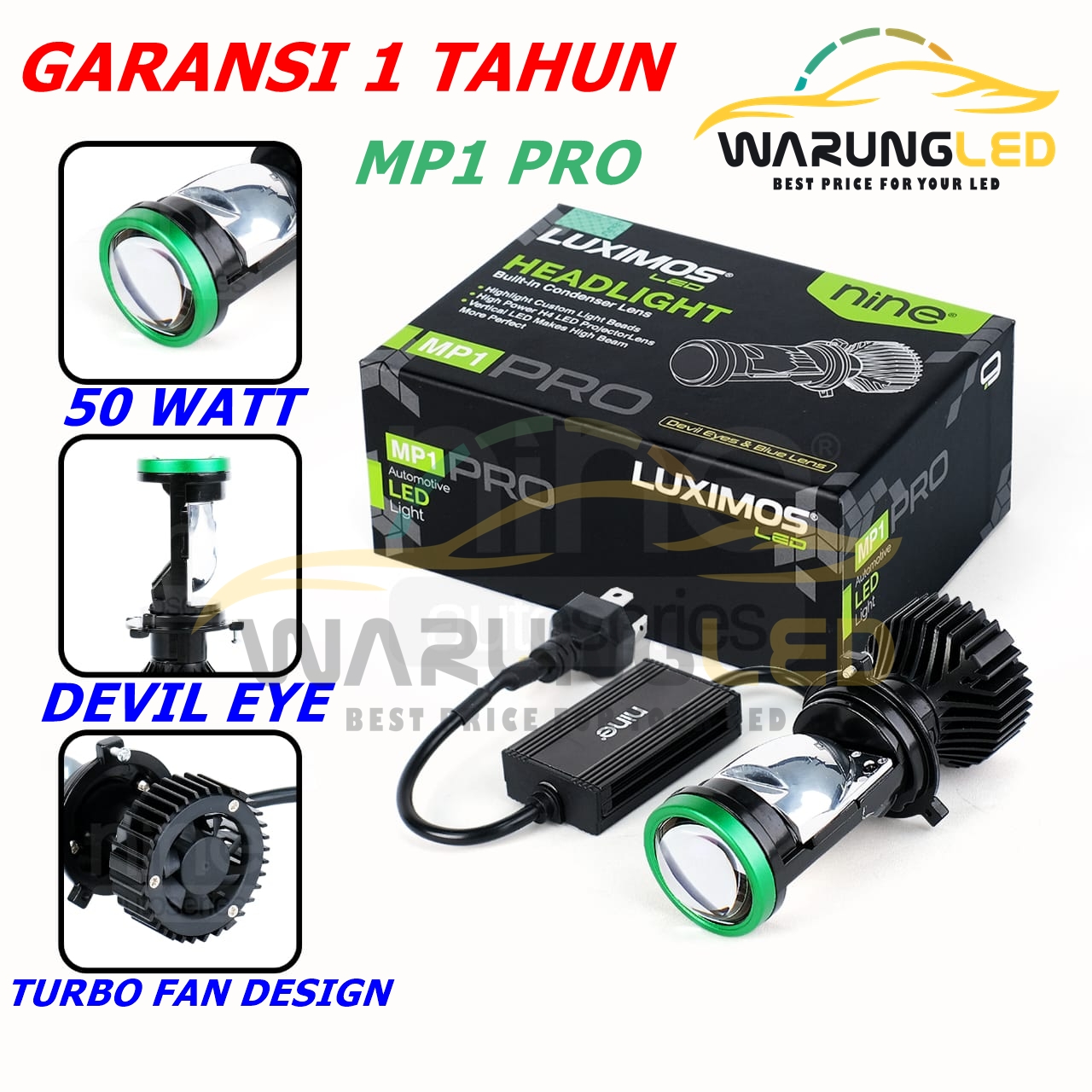 LAMPU UTAMA H4 NINE LUXIMOS MP1 PRO DEVIL EYES 50 WATT TURBO FAN GARANSI 1 TAHUN