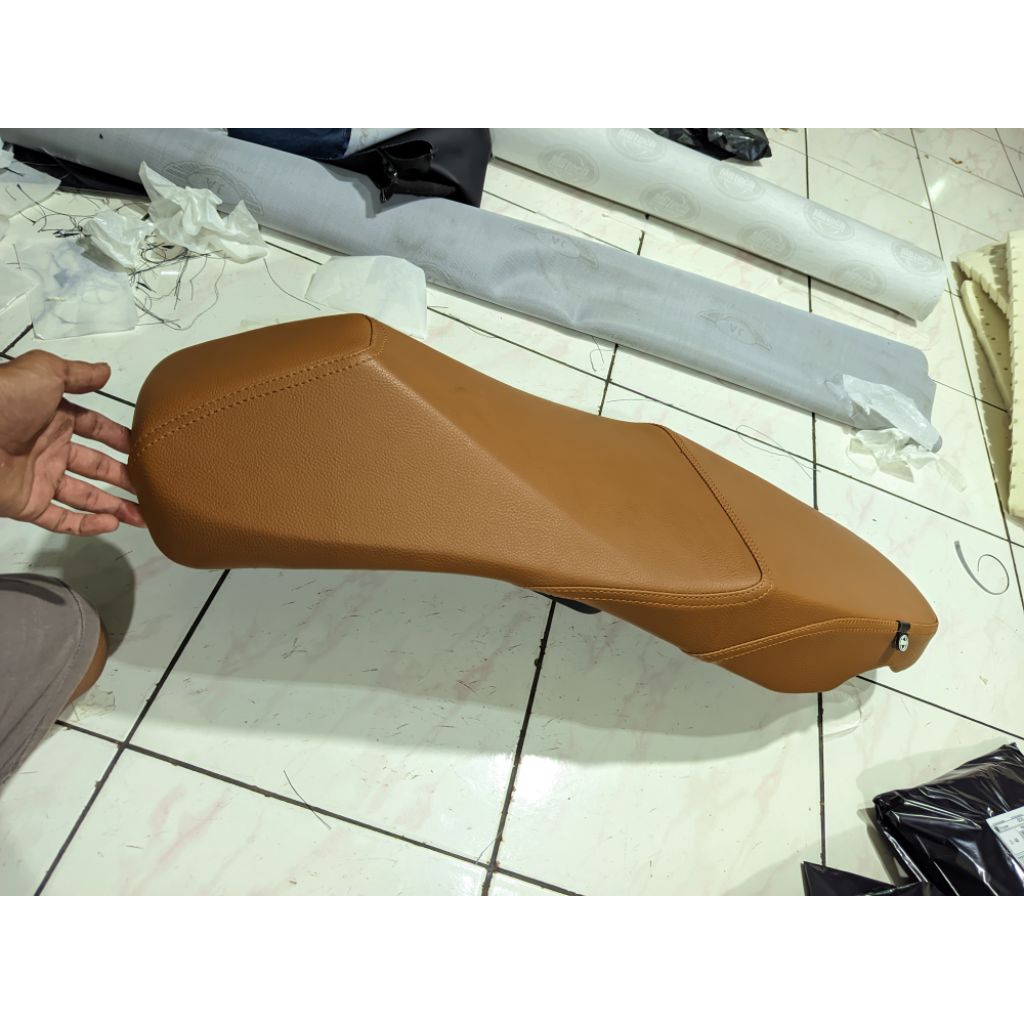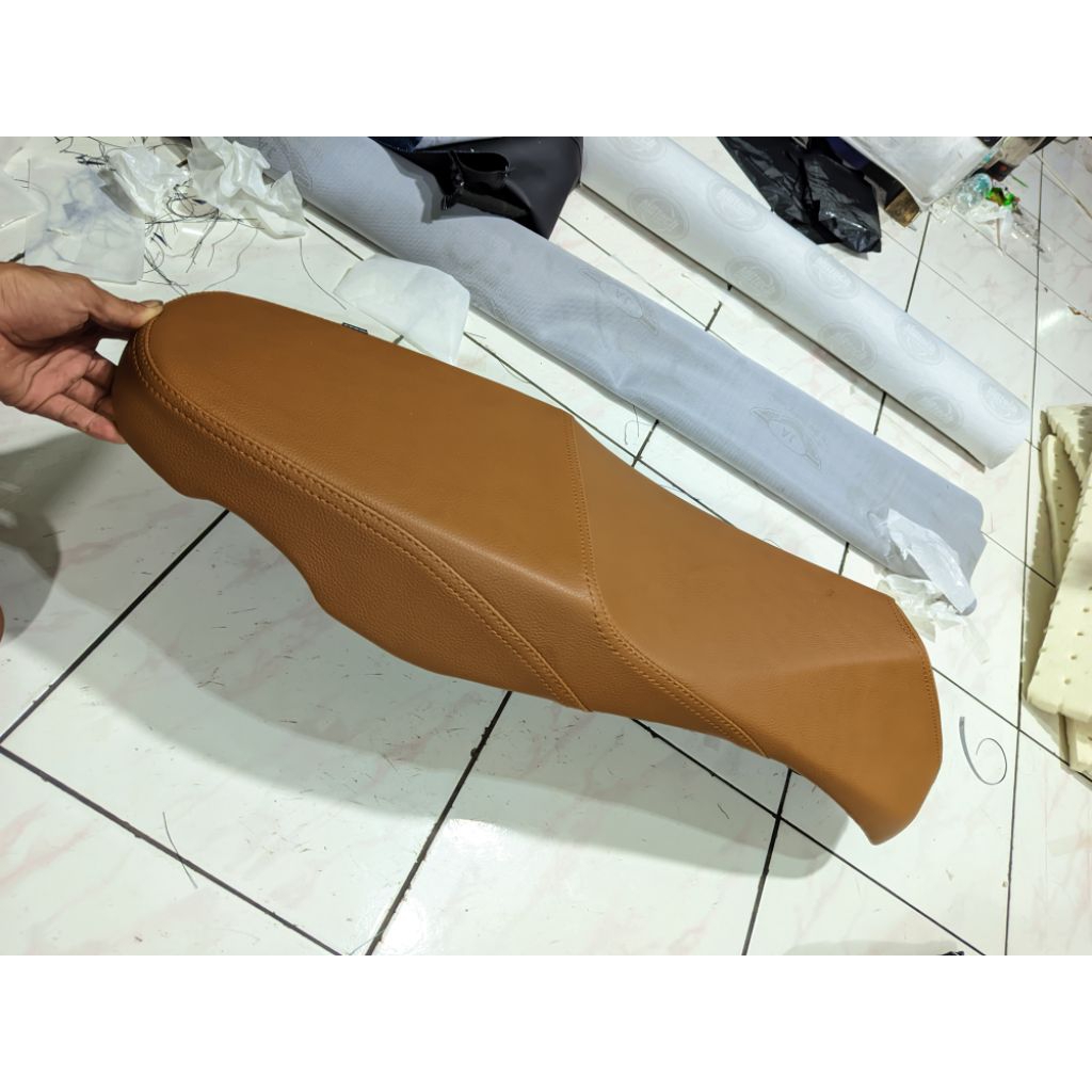 JOK LATEX bahan ( COKLAT jahitan TENGAH ) MB TECH CAMARO motor scoopy beat vario genio n max pcx mio m3 soul x ride gear
