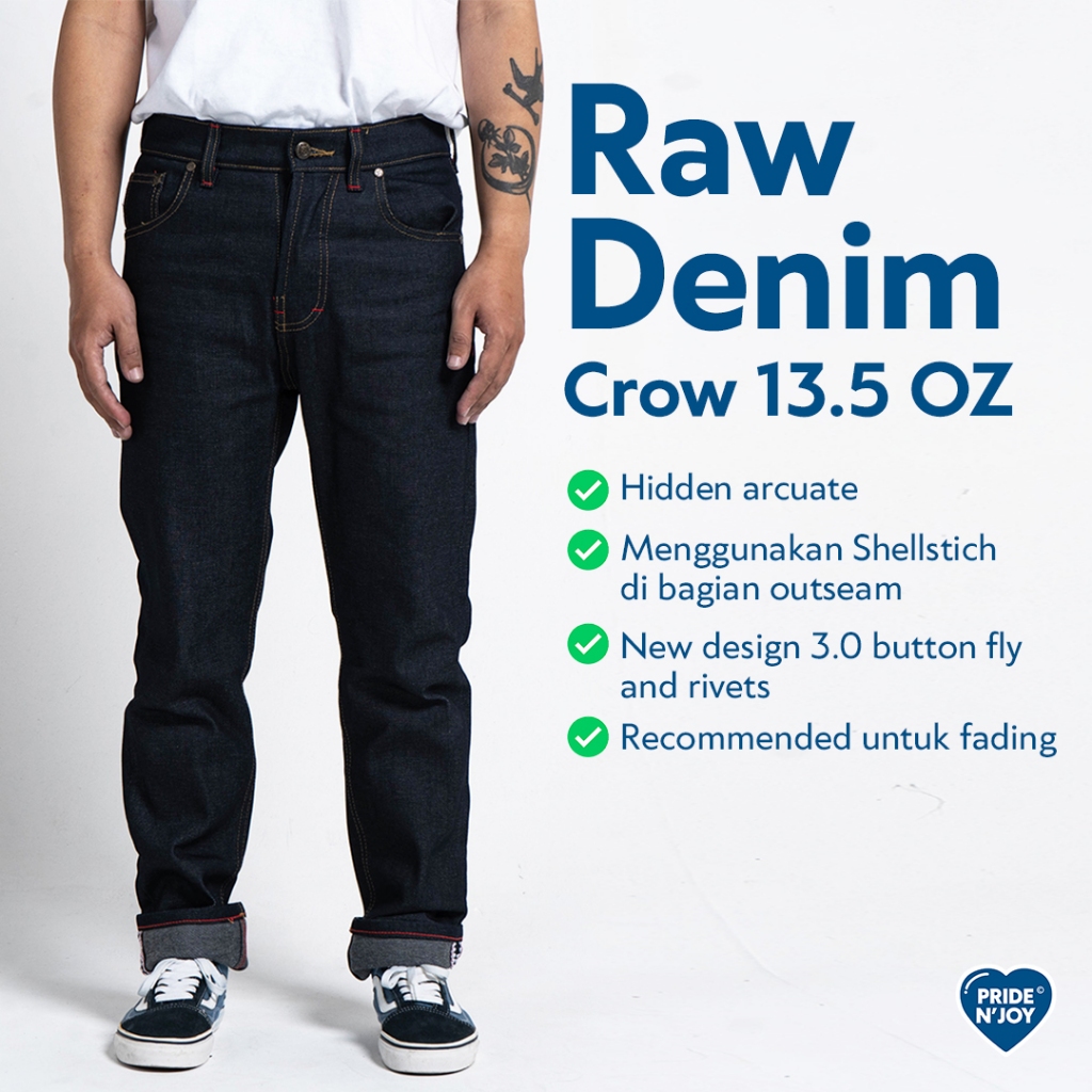 GRATIS ONGKIT Celana Jeans Panjang Pria Pride N Joy Celana Jeans Raw Denim Crow Celana Denim Pria Original