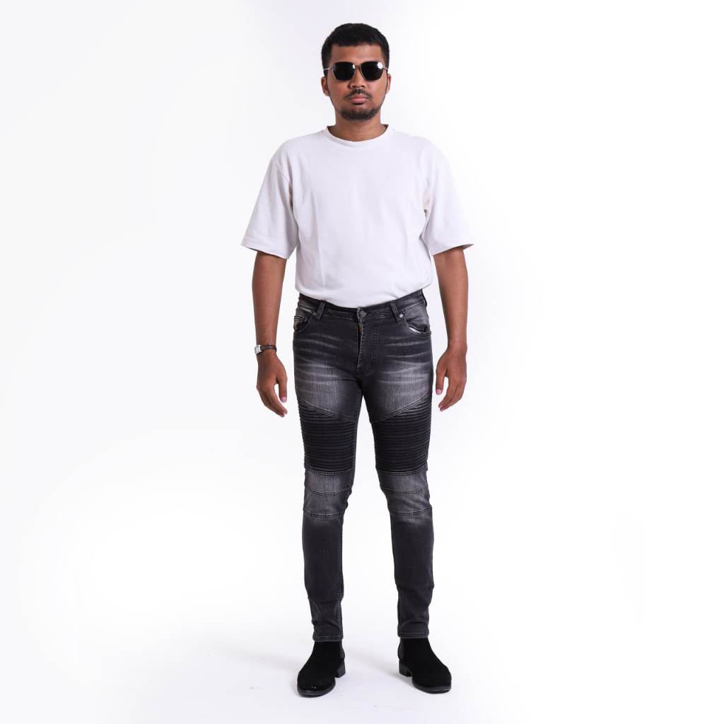 Weird Jeans - Biker Grey Madness - Celana Jeans Panjang Pria Slimfit Strech Polos Warna Hitam