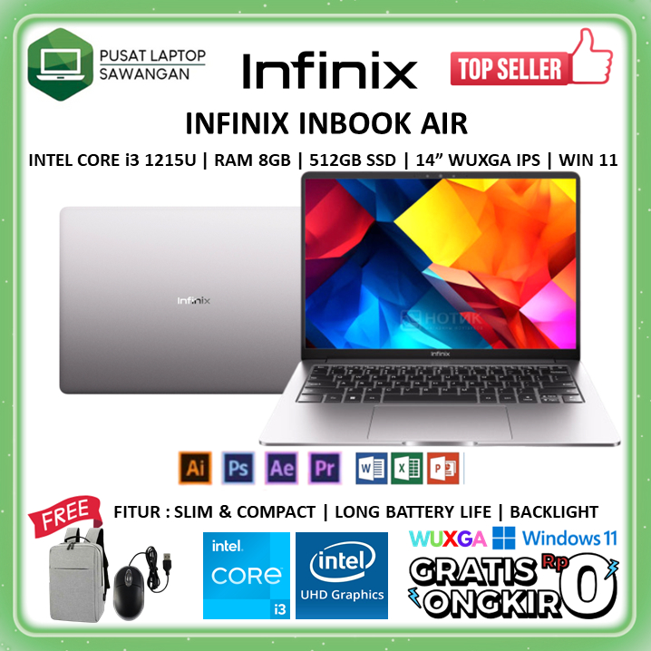 Laptop Infinix Inbook Air Intel i3 1215U RAM 8GB 512GB SSD Layar 14 Inch WUXGA IPS Windows 11 Original Garansi Resmi