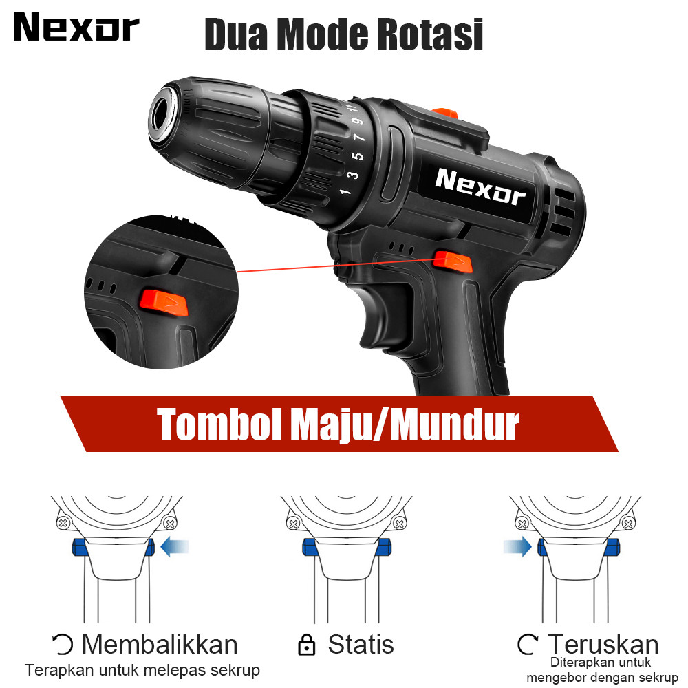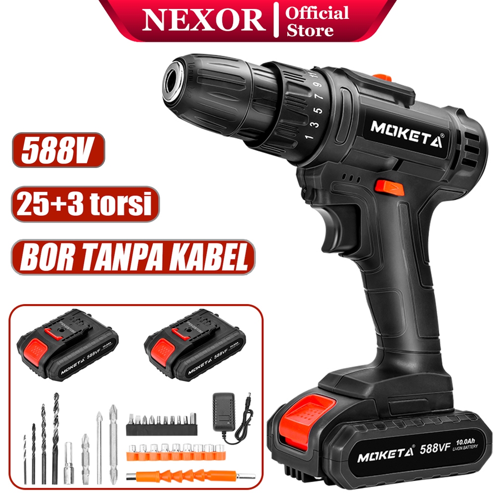 Nexor 588VF Bor Baterai Mesin Bor Listrik bor cas bor batre Murah Bor Impact Cordless