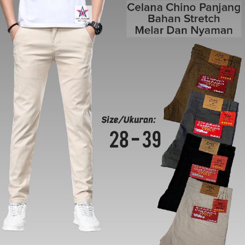 AN JEANS - Celana Chino Panjang Pria Slimfit Cowo Pants Chinos Pakaian Cowok Dewasa Bahan Stretch (Ukuran 28 - 39)