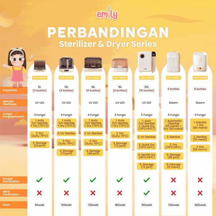 Emily UV Sterillizer & Dryer 6L 60W Low Watt / Sterillizer Baby / Sterillizer Botol Bayi / Pengering Alat Bayi