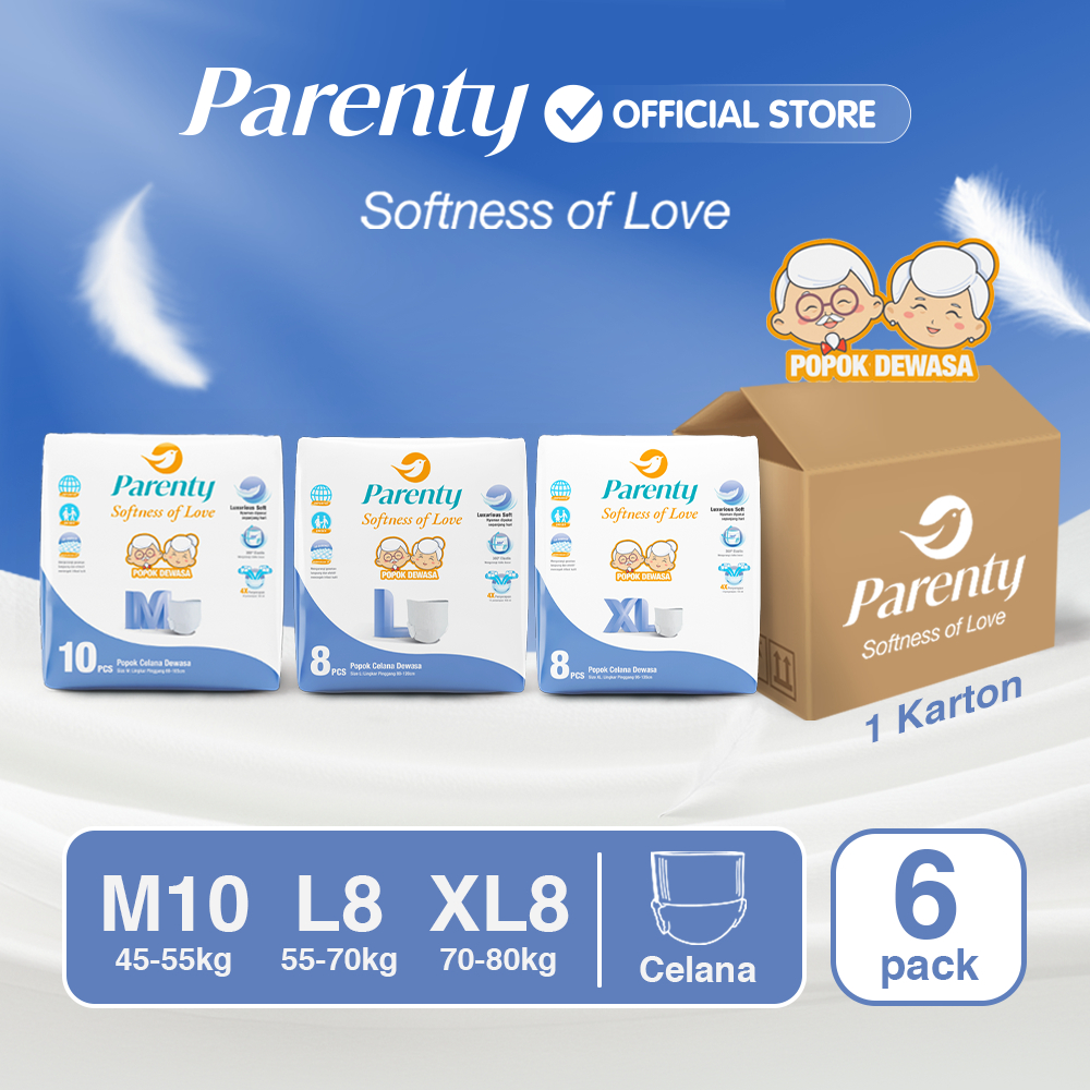 POPOK DEWASA PARENTY 1 KARTON ISI 6 PACK MIDDLE FLOW SOFT PANTS CELANA UKURAN M10 L8 XL8 PAMPERS ORANGTUA MURAH