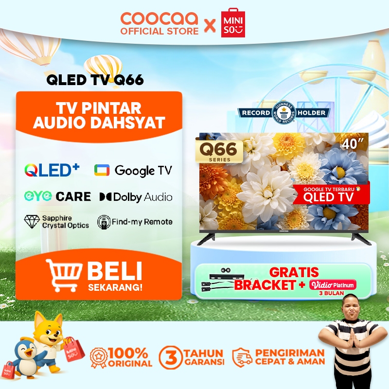 COOCAA TV 40 inch Q66 - 2K QLED - Google TV - Sapphire Crystal Optics MURAH GARANSI RESMI FREE ONGKIR