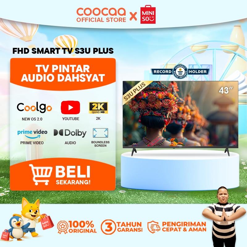 COOCAA 43 inch S3U PLUS - Coolita 3.0 - Smart TV - Youtube/ Prime Video - Dolby Audio MURAH GARANSI RESMI FREE ONGKIR