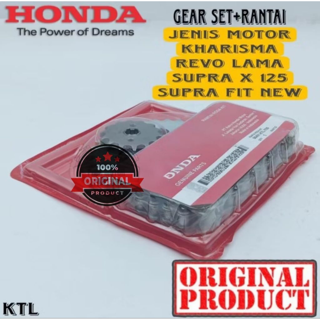 GEAR SET +RANTE KTL ORIGINAL AHM HONDA KHARISMA, REVO LAMA, SUPRA X 125, SUPRA FIT NEW, DRIVE CHAIN KIT GIR SET KTL