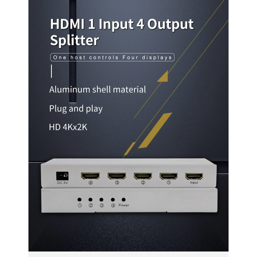 HDMI Splitter 4 Port (BAGUS) Aluminium / 1 Input to 4 Output Support 4K / Hdmi Splitter 4 Port / Adapter Konverter HDMI