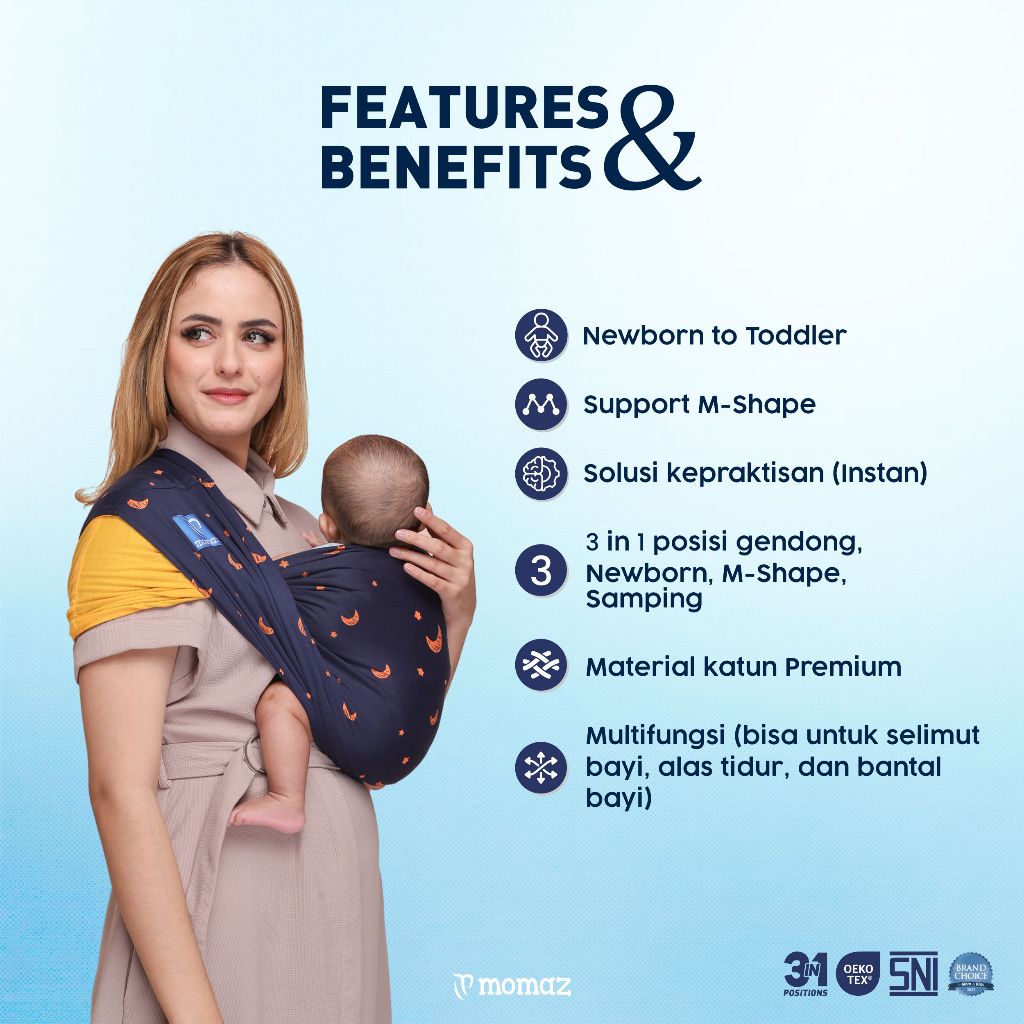 Momaz Gendongan Bayi Newborn - Gendongan Bayi Samping - Gendongan Bayi M Shape - Gendongan Bayi