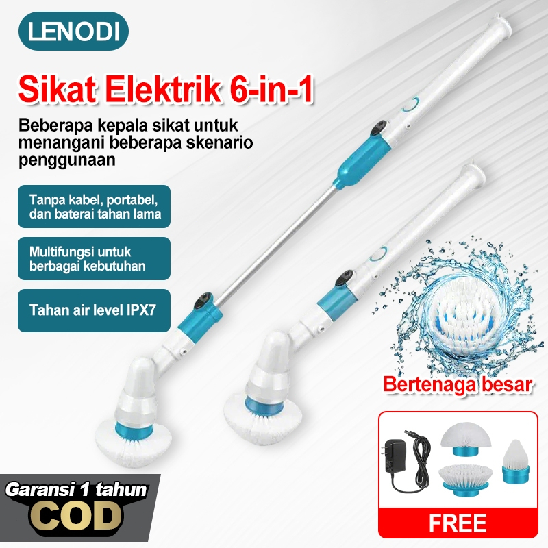 Lenodi Alat Pembersih Listrik 8-in-1/Tahan Air portable Shower Lantai Kamar Mandi scrubber 6in1 Sikat Pembersih Kamar Ma