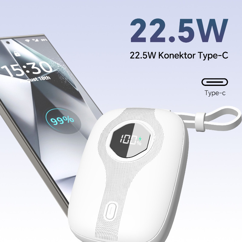 [SUPER MINI] Morein PB06 SE Powerbank 10000mah PD 22.5W Fast Charging LED Battery Display Built-in Cable Type C + Lightn