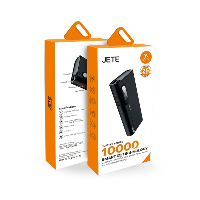 JETE Powerbank Fast Charging Jupiter 10000mAH Power Bank Portable Dual Port Type C With LED Indicator