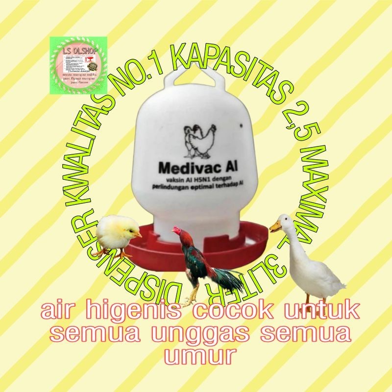 B1GL BOTOL MINUM AYAM UK 3 LITER AIR DISPENSER AYAM BURUNG ANTI KOTOR ANTI JAMUR BY MEDION