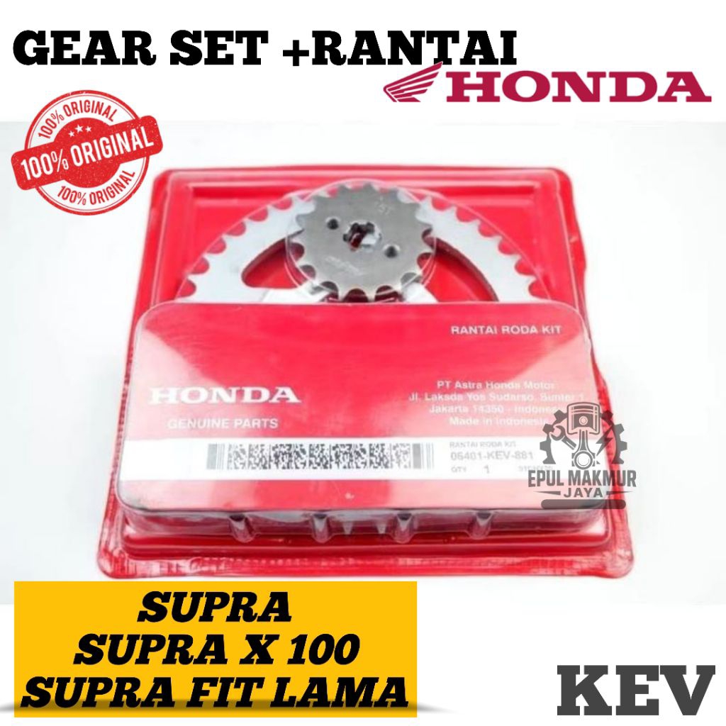 GEAR SET RANTAI HONDA SUPRA, SUPRA FIT LAMA, SUPRA X KUALITAS ASLI HONDA AHM KODE KEV