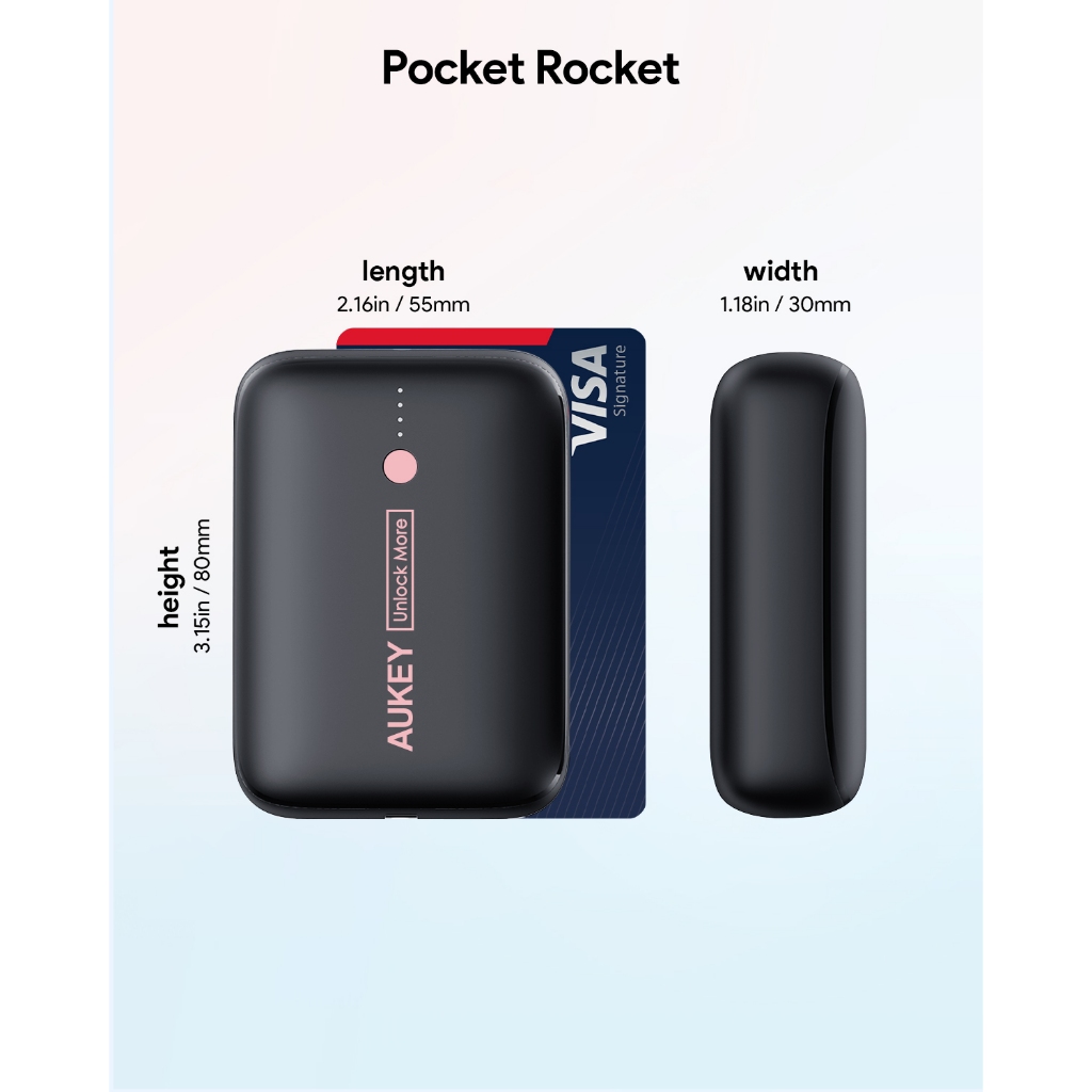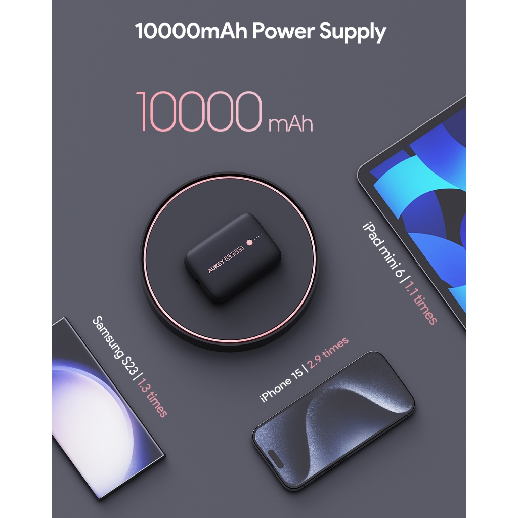Aukey Power Bank 10000 mAh Mini 22.5W Powerbank PD 3.0 Multiport USB & Type C Fast Charging GaN Technology Compact Size