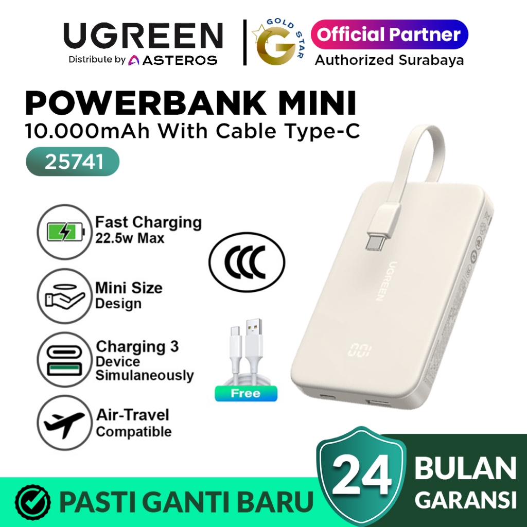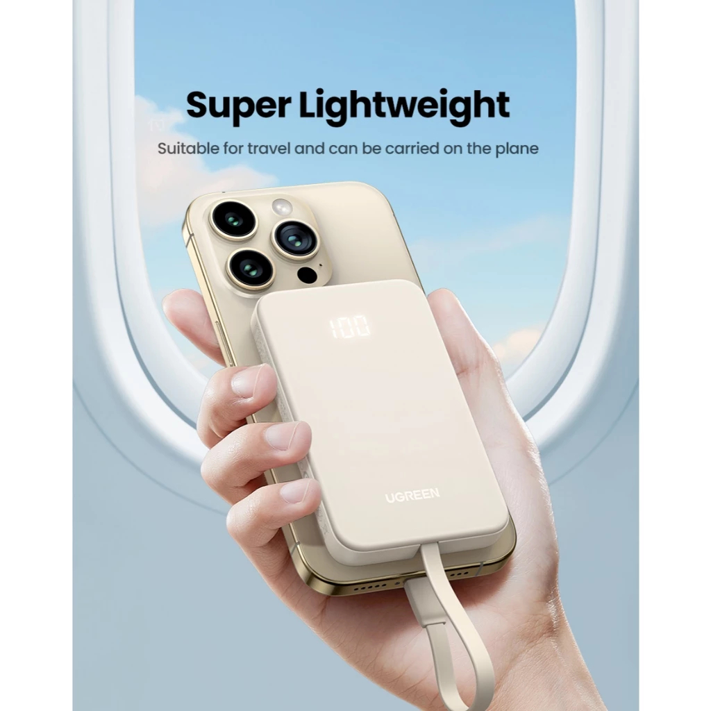 CCC UGREEN Power Bank 10.000mAh PD QC 3.0 Fast Charging 20W LED Built in Cable Type C 25741