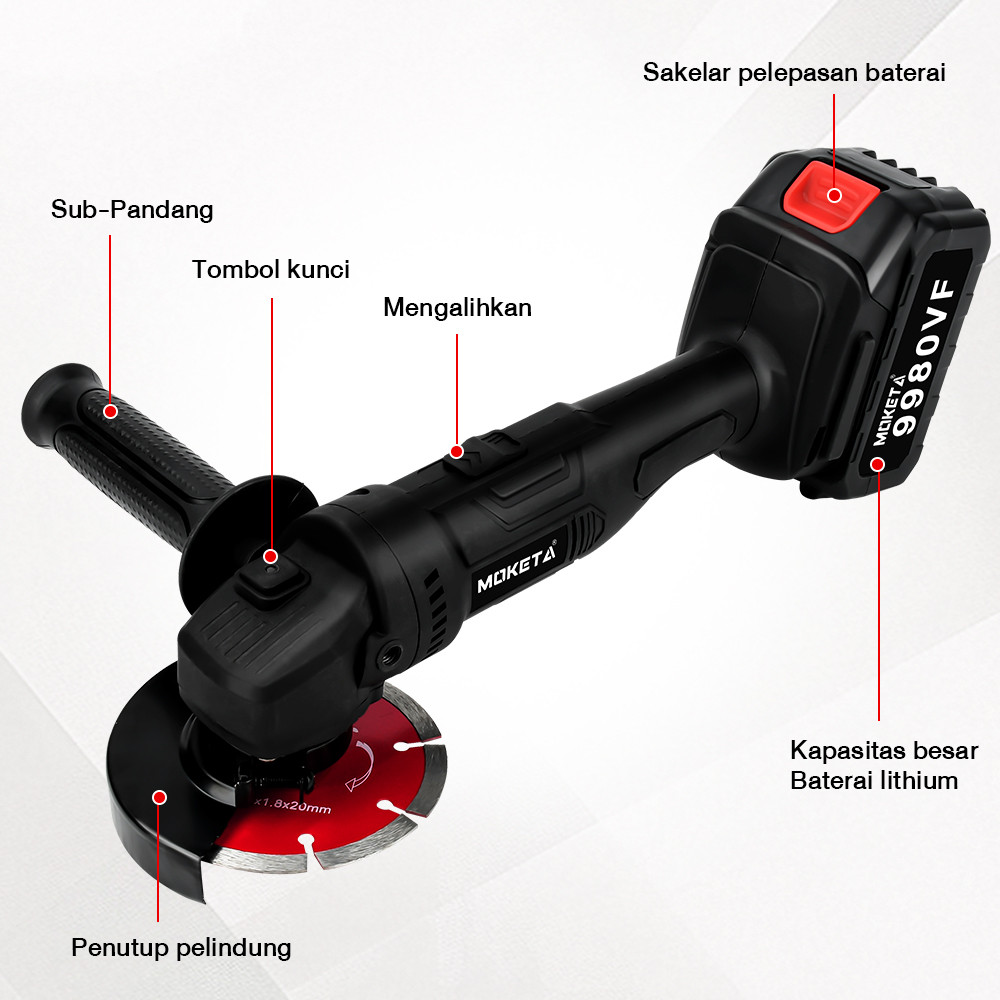 NEXOR 4Inch Brushless Mesin Gerinda Baterai Tangan 2000W Cordless Angle Grinder
