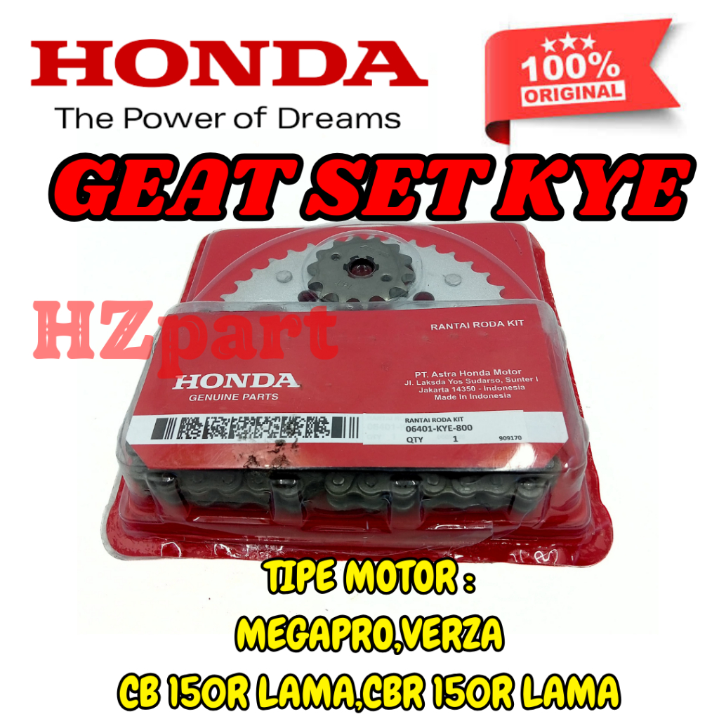 ASLI GEAR SET+RANTAI KODE-KYE HONDA MEGAPRO/VERZA/CB 150 R LAMA HONDA KYE KUALITAS ORIGINAL ASLI100