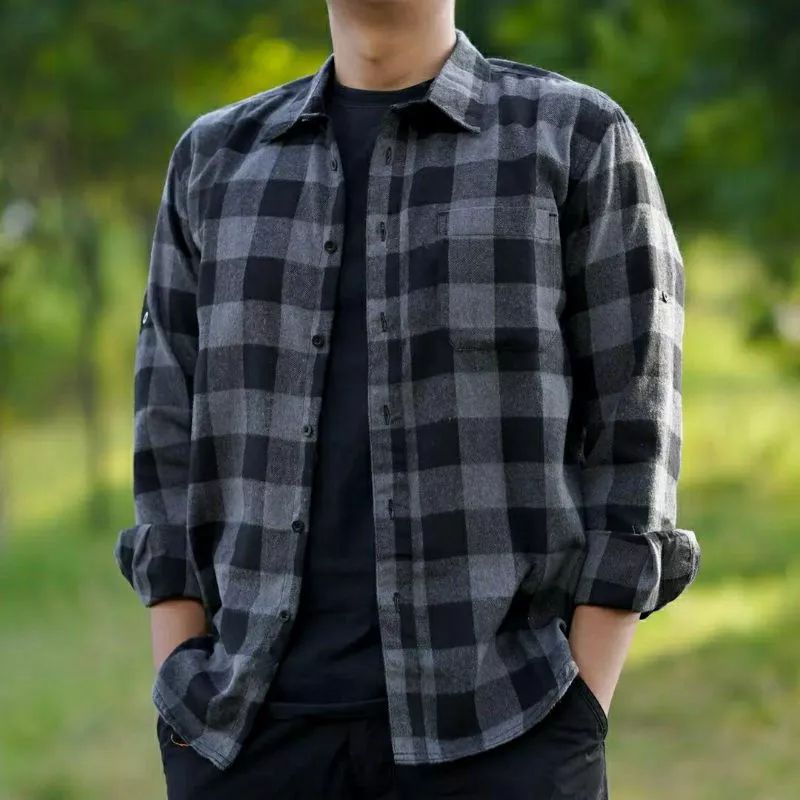 MOLBEE.CO Kemeja Flanel Lengan Panjang Pria Motif Kotak kotak Kualitas Premium