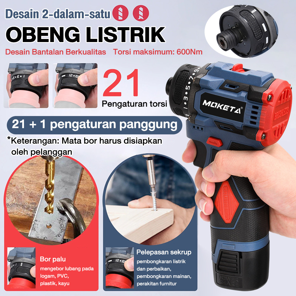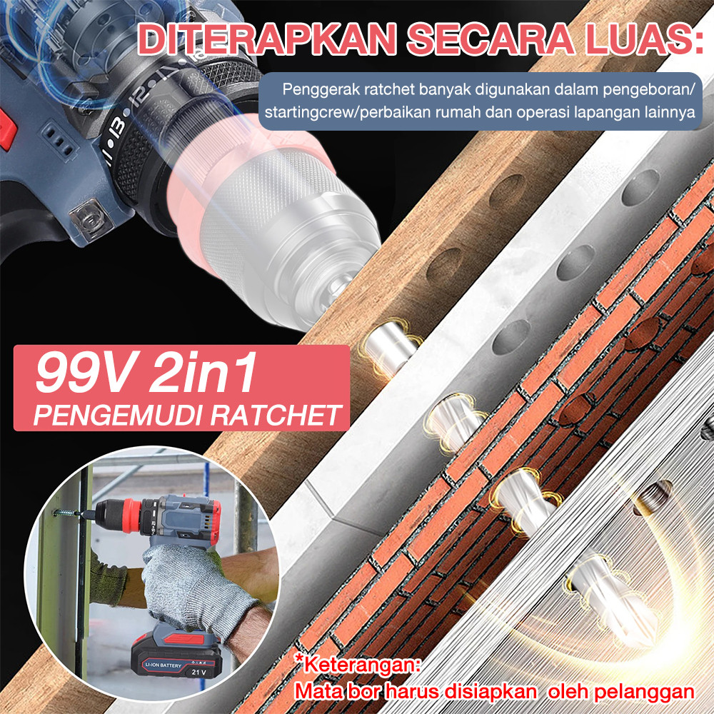 NEXER 99VF Brushless Obeng Lithium Kit Mesin Bor Baterai Tangan Cordless Drill Multifungsi