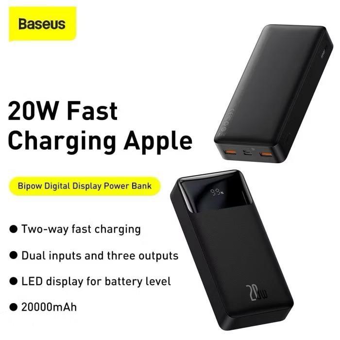 BASEUS POWERBANK BIPOW DIGITAL DISPLAY FAST CHARGE POWER BANK 20000MAH 20W - PPBD050501