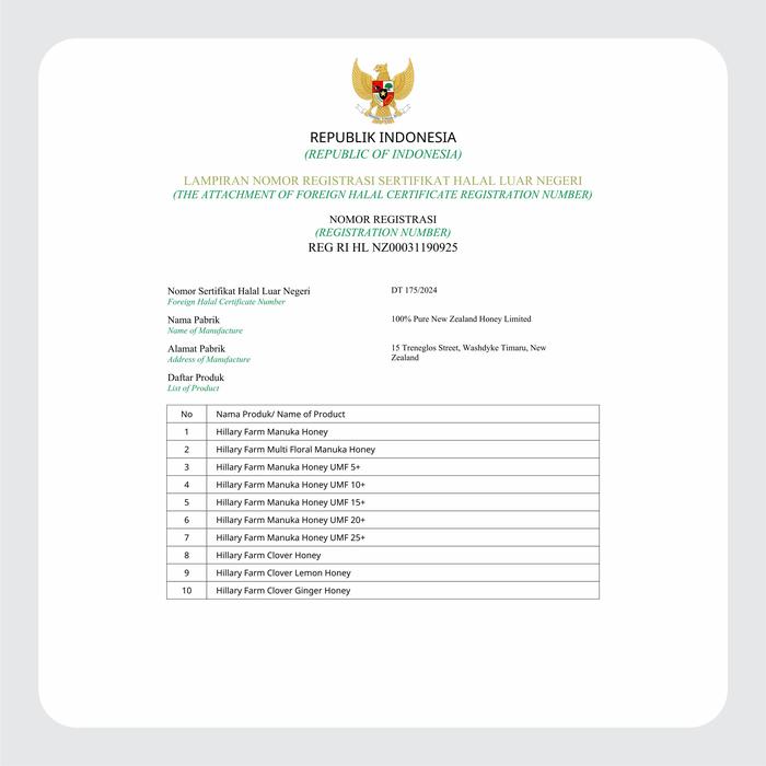 MADU CLOVER / CLOVER HONEY HILLARY FARM 500GR