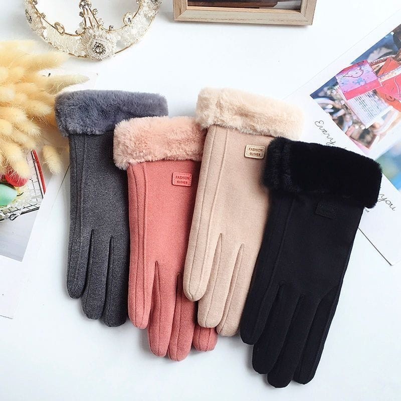 Woman Touchscreen Winter Fashion Fur Gloves Sarung Tangan Wanita Musim Dingin Dengan Ornamen Bulu
