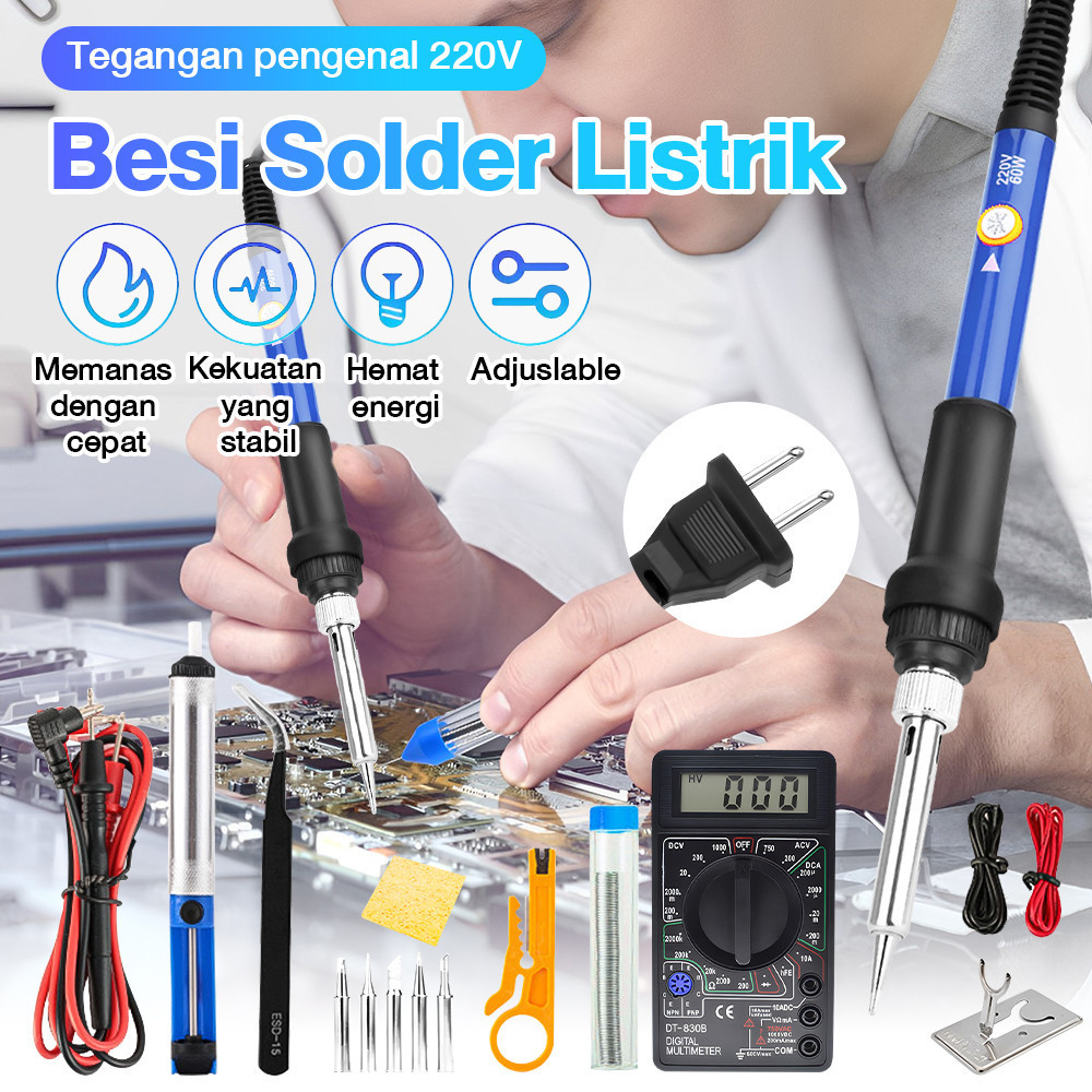Nexor 19pcs Besi Solder Listrik 60 Watt Paket Penyedot Penghisap Timah Kit