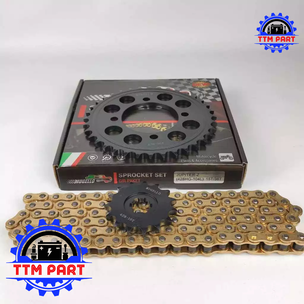 GEAR PAKET BAJA YAMAHA JUPITER Z - BURHAN - VEGA R - VEGA LAMA - VEGA R NEW - FIZR - CRYPTON - ALFA - FORCE 1 15/36T 428HG - 104L GIR SET MUGELLO