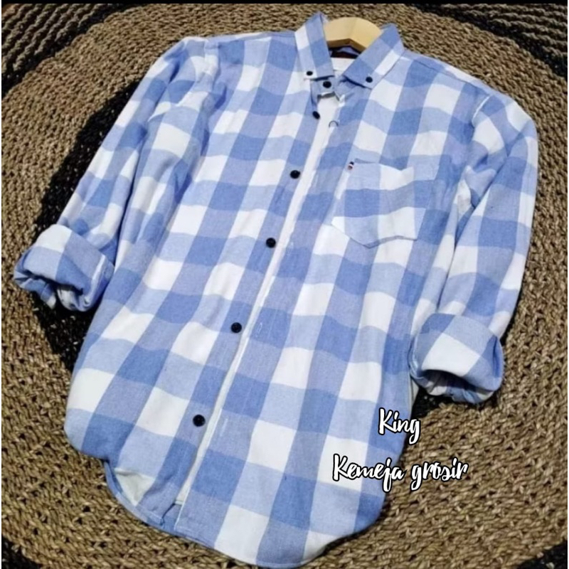 Kemeja Flanel lengan panjang pria wanita casual distro motif Cowo Kantor Kasual Formal square unisex terlaris