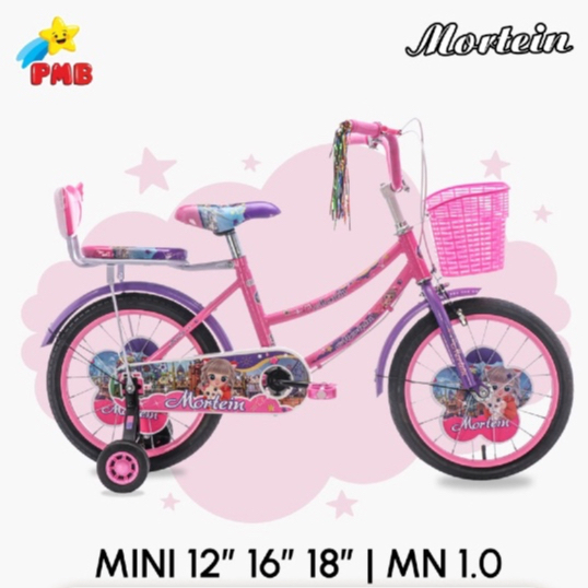 SEPEDA ANAK PEREMPUAN 12 16 INC MORTEIN DENGAN BONCENGAN DAN KERANJANG SEPEDAH BERKUALITAS STANDAR SNI BARU TERMURAH
