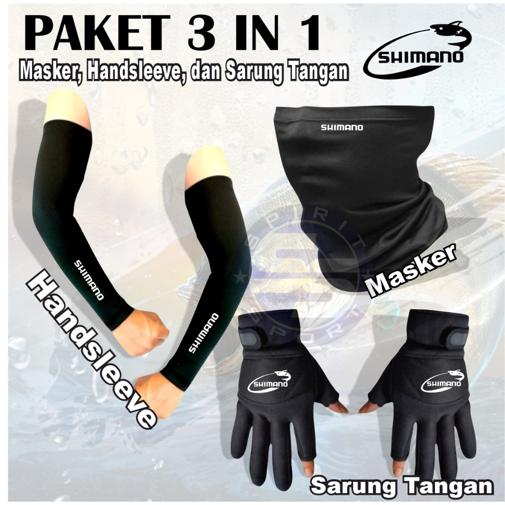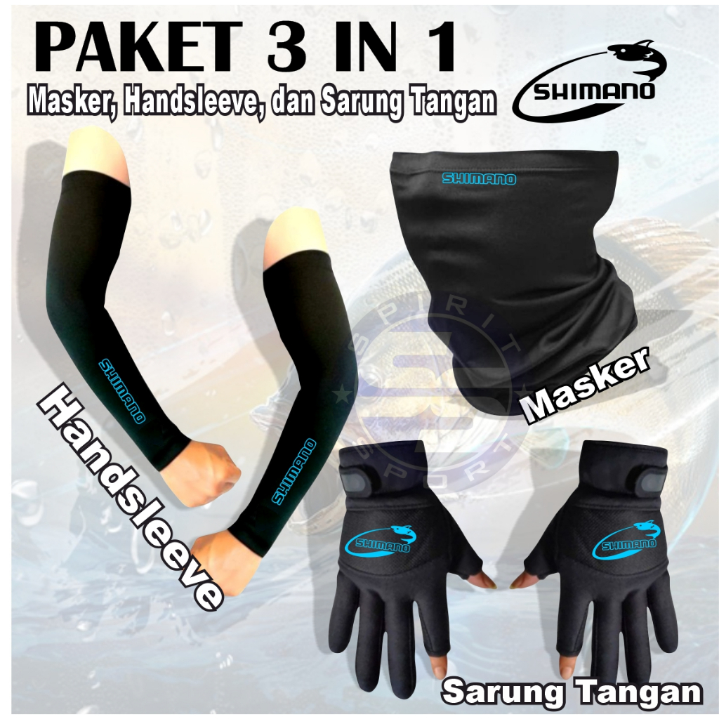 Paket 3 In 1 Simano Mancing Isi Sarung Tangan Pemancing Arm Sleeve Dan Masker Buff Anti Uv