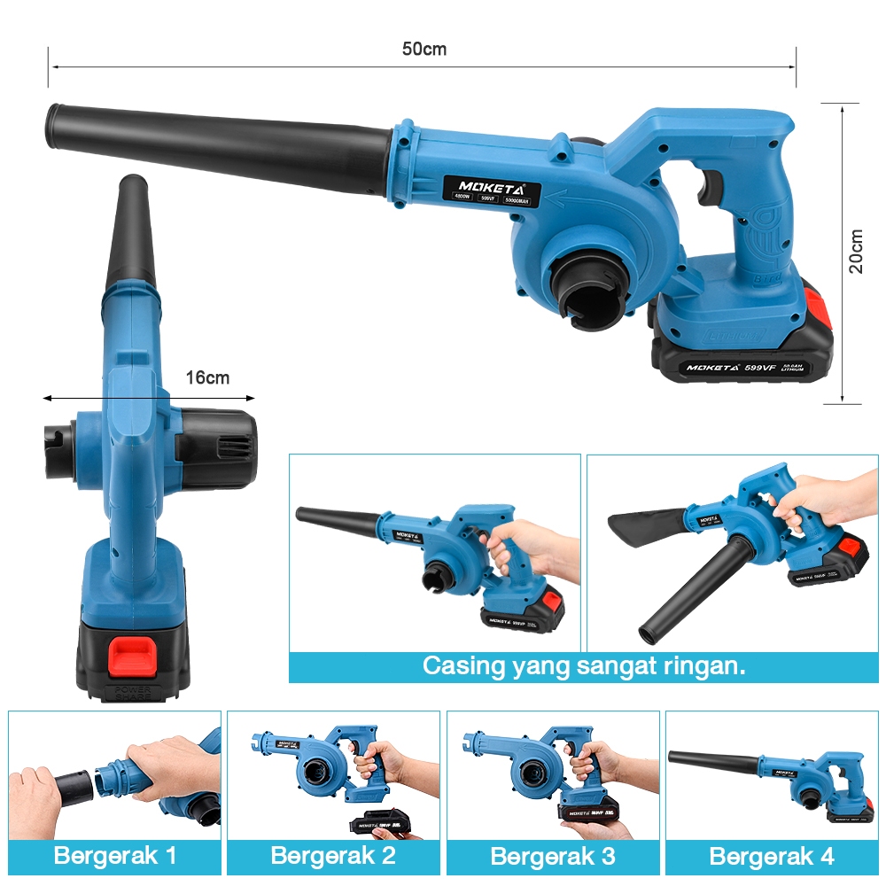 Nexor 4800W Mesin Blower Tangan Cordless Blowe Elektrik Tiup Tangan 599V 2 Baterai
