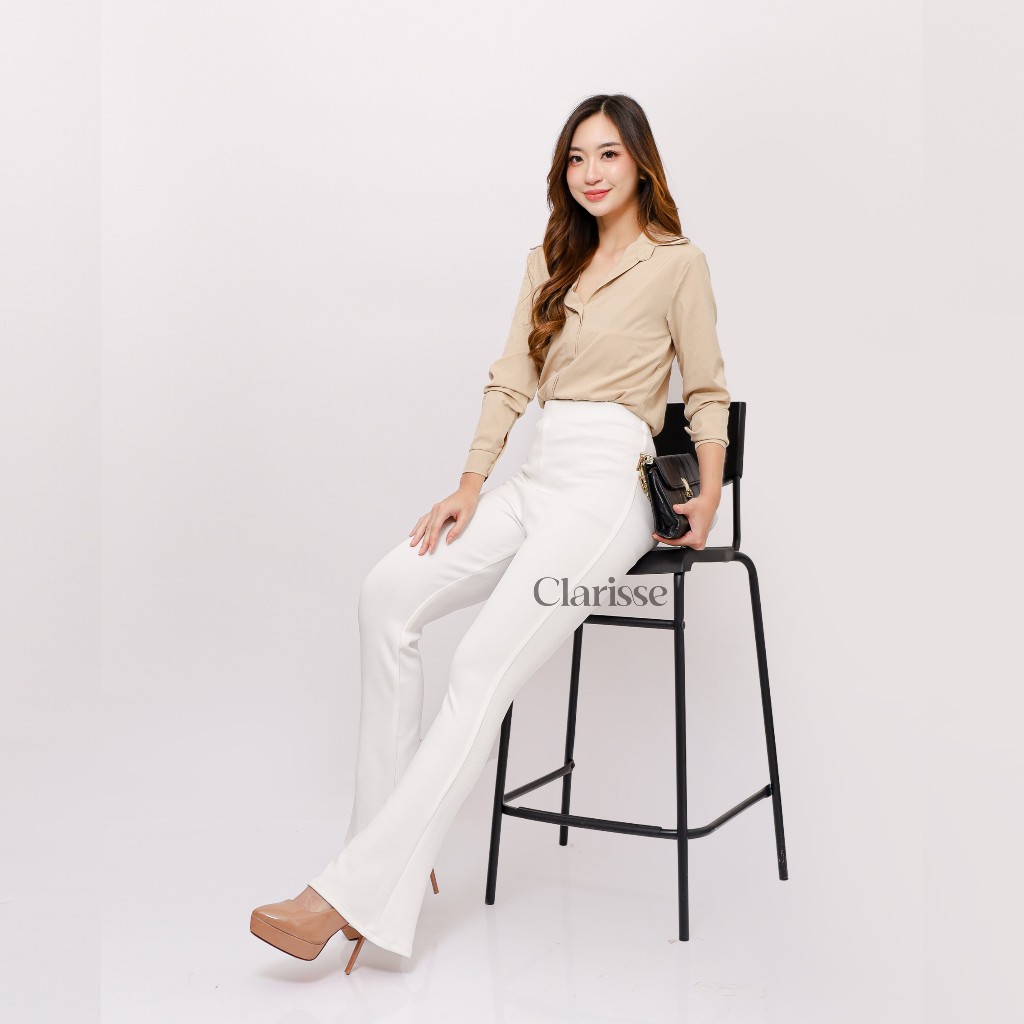 Clarisse.id - Flare Pants Celana Cutbray Wanita Scuba Highwaist - Celana Kerja Wanita Anti Kusut