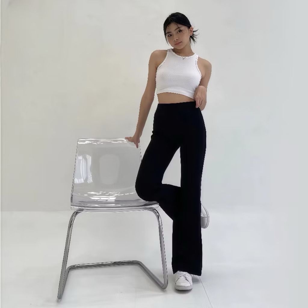 Luvena Fashion Celana Fit & Flare Pants Cutbray Scuba Pinggang Highwaist Bahan Stretch Melar Elastis