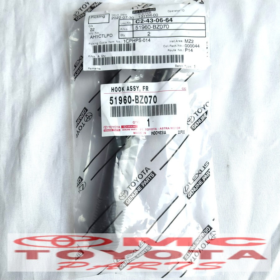 Towing Hook / Besi Cantolan Derek Depan Agya Ayla Calya Sigra Original Toyota 51960-BZ070