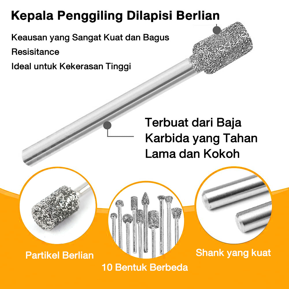 UneedTools MATA BOR TUNNER CUNER ALAT PORTING 10PCS KIT berlian kikir putar duri karbida bor alat