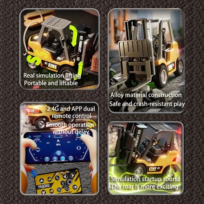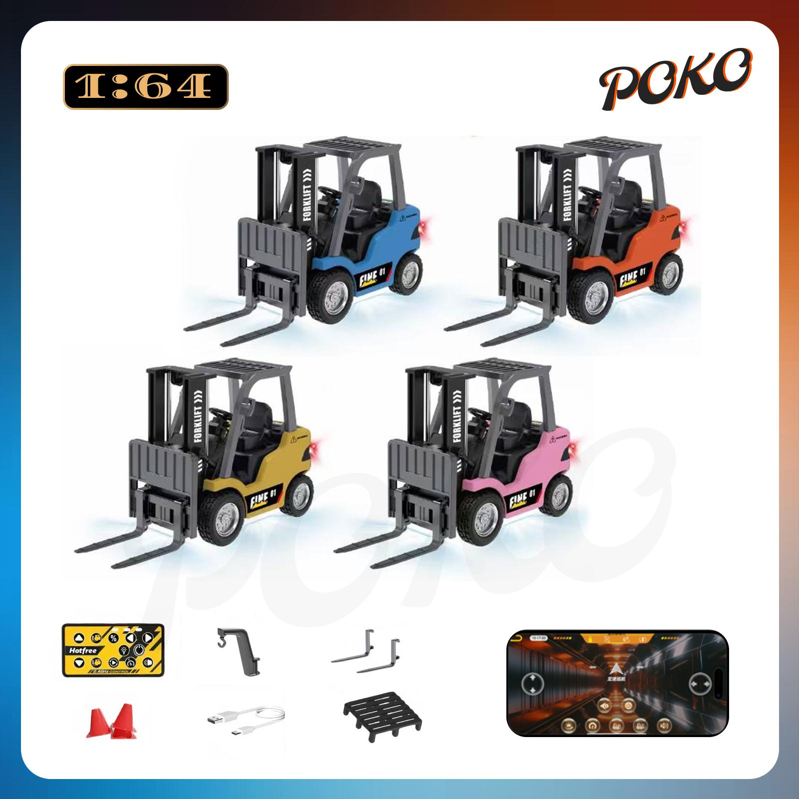 POKO 1:64 Mini Forklift RC Premium Paduan - 11 Channel, Multifungsi 2-in-1, Aplikasi 2.4Ghz dan Remote Control