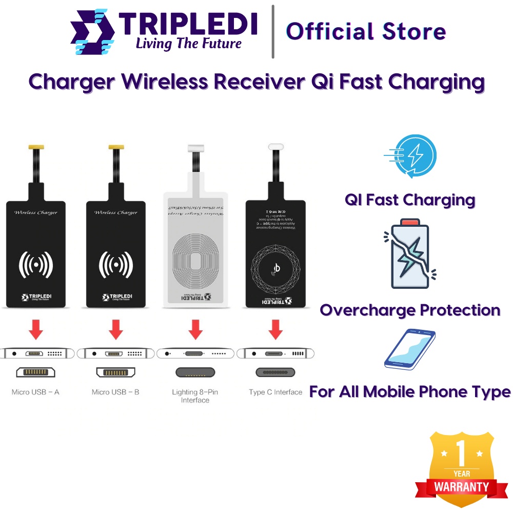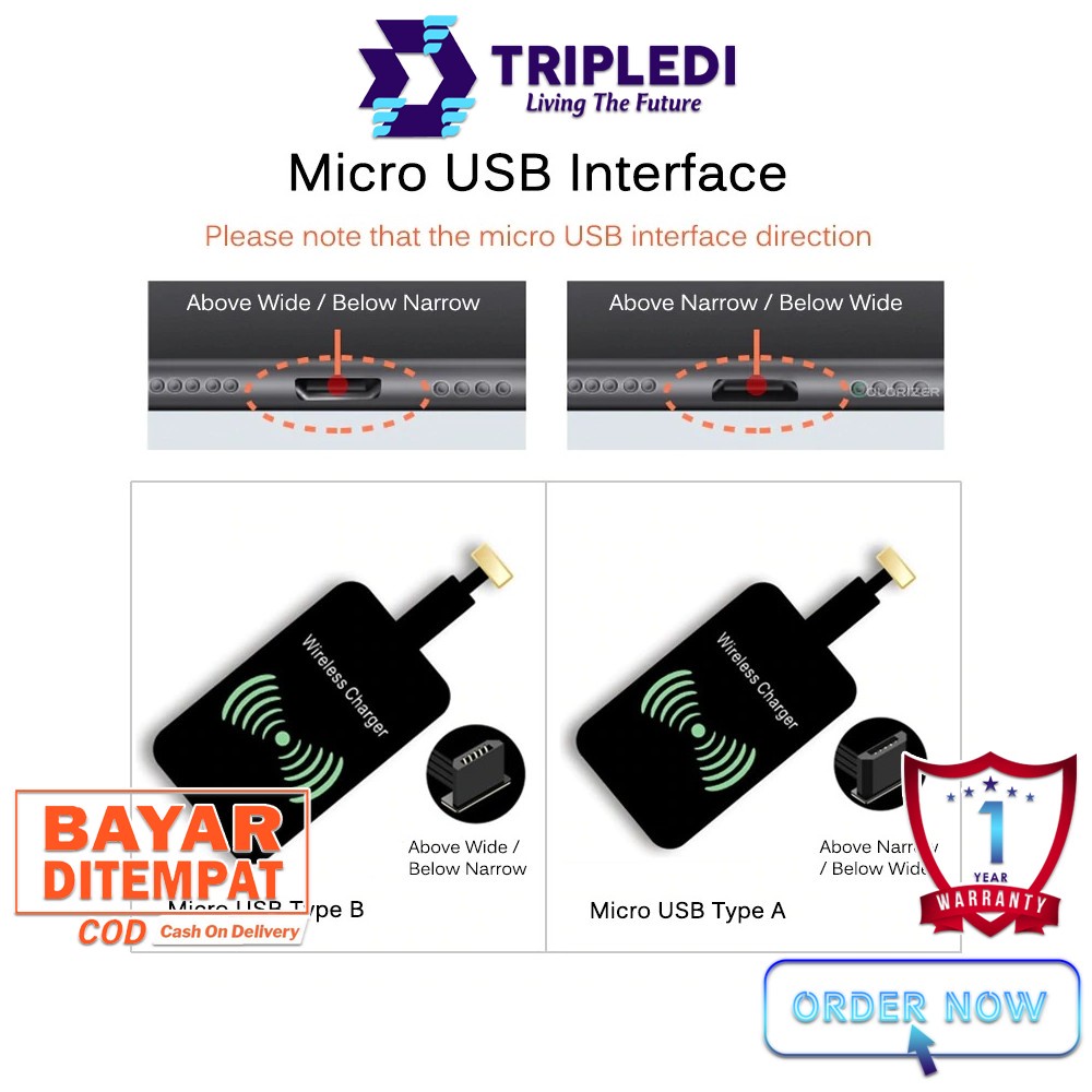 TRIPLEDI Wireless Charger Receiver Qi Fast Charging Adapter 5W Pengisi Daya Handphone Ponsel Nirkabel Micro USB Type A T